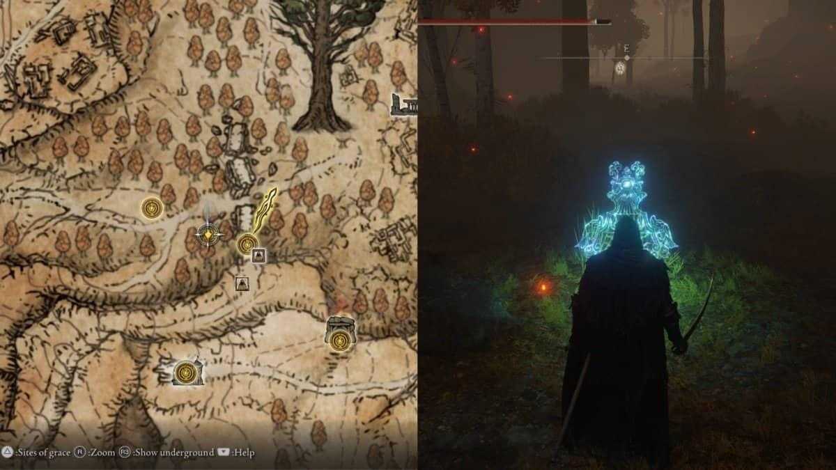 В дальнем левом углу этой области находится еще одна иллюзорная стена. За ним находится улитка призывательница духов, отвечающая за всех духов в этом районе. Победите улитку, чтобы избавиться от призраков. Вы также можете получить Талисман Дракона Святого древа +1 здесь.