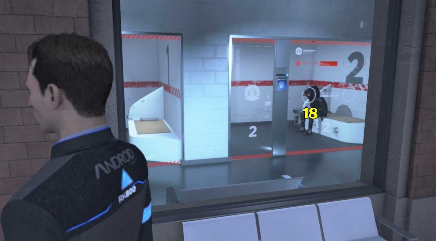 - В главе «Допрос», когда Коннор и Хэнк пытаются вытянуть из пойманного девианта хотя бы какую-нибудь информацию, все может закончиться крайне плачевно. Если андроид-полицейский не сможет совладать со своим противником и доведет его уровень стресса до 100 процентов, то тот начнет биться головой об стол, самоуничтожаясь. Если Коннор попытается вмешаться, то окажется застрелен ловким девиантом.