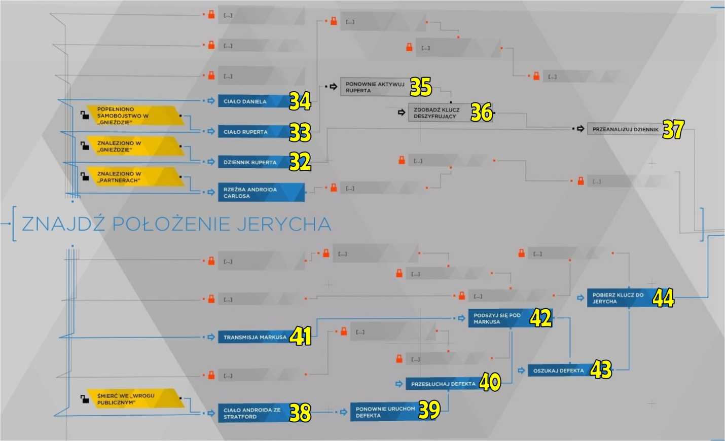 - Если вы игнорируете Гэвина (23), Гэвин заподозрит (26). Когда вы найдете местоположение Иерихона, он вернется (46) в архив, и вам придется с ним сразиться.