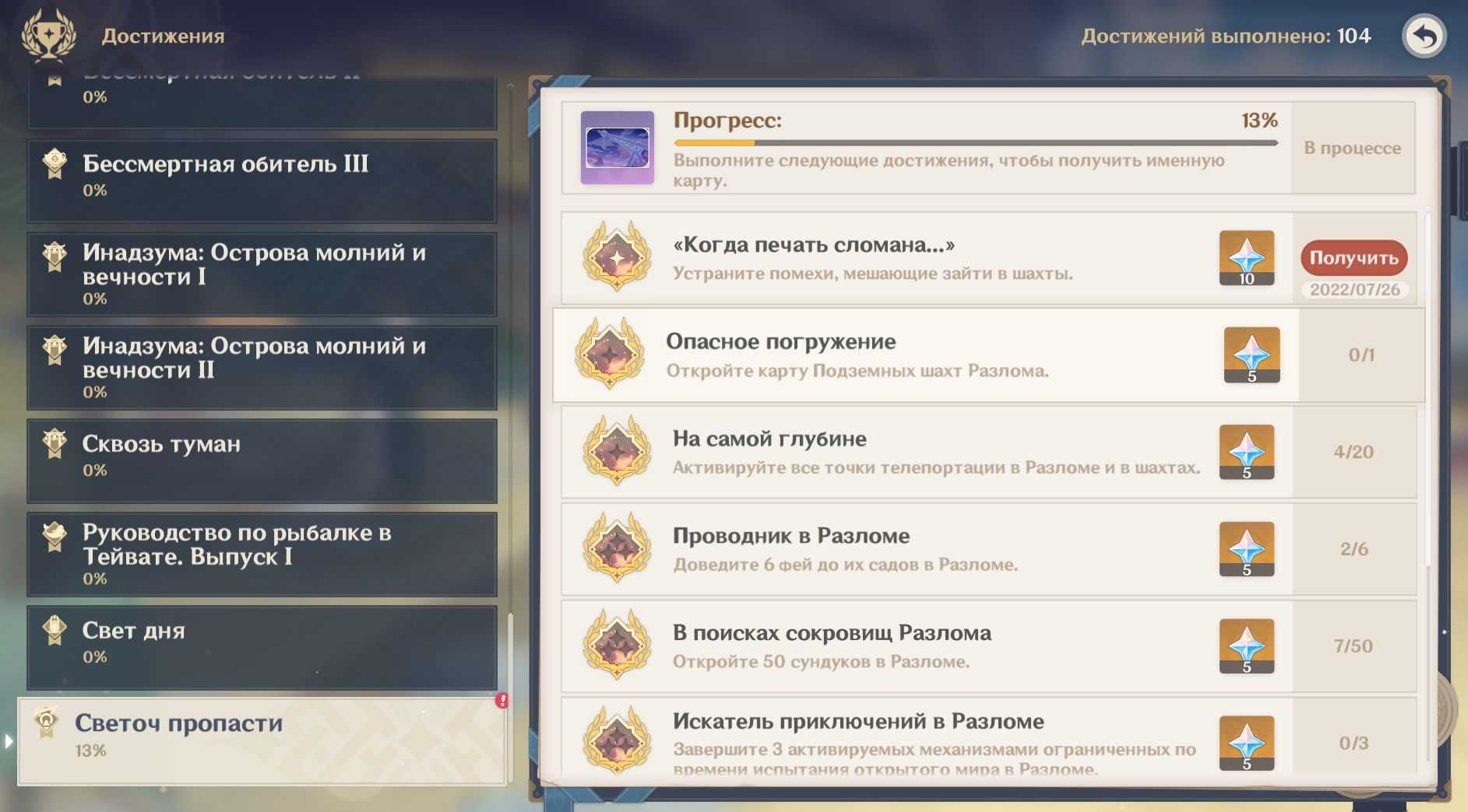 Если собрать все ачивки сета Светоч пропасти, можно получить именную карту «Разлом».