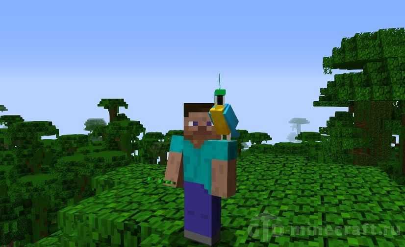 Попугаи встречаются в джунглевом биоме. Приручить попугая в Майнкрафте гораздо проще, чем добраться до него, ведь эти птицы сидят на вершинах деревьев и очень часто перемещаются. Если тебе удастся подобраться достаточно близко, то просто дай попугаю любые семена. После этого он будет следовать за тобой, а также может сесть на плечо, если некоторое время постоять около него. Прирученную птицу можно продолжать кормить семенами, но практической пользы от этого нет. Также она будет есть печенье, но от такой пищи получит эффект отравления и в скором времени погибнет.