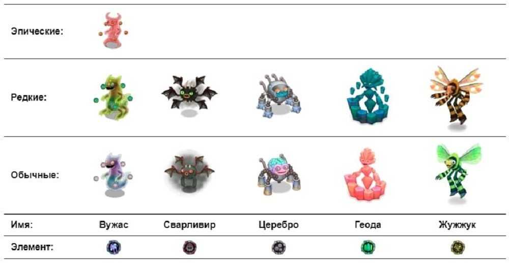 Для выведения одноэлементных редких монстров необходимо соединить двух трехэлементных чудиков с общим элементом нужного создания.