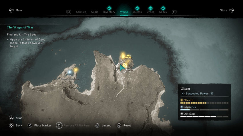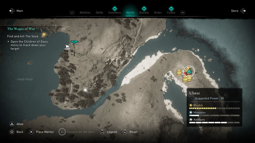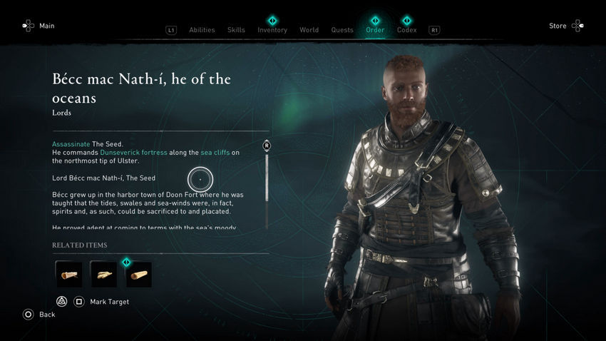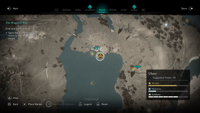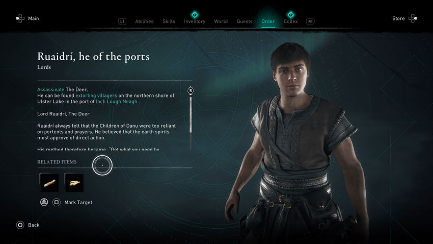 Вы можете убить Оленя, не найдя всех улик, раскрывающих его местонахождение. Олень остается на северном берегу озера Ольстер в порту Инч-Лох-Ней. Скорее всего, он будет внутри вражеского лагеря, в котором находится кельтский плащ. Если вы хотите собрать улику, которая раскрывает личность Оленя, вы найдете ее в Ардмеле, торговом посту в восточном Ольстере. Подсказка находится рядом с доком, недалеко от стен торгового поста.