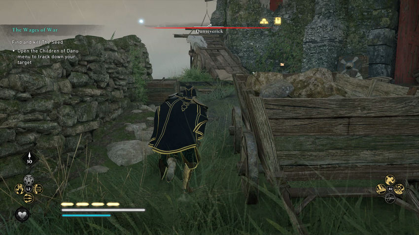 Семя находится во вражеской цитадели Дансеверик на северо-восточной оконечности Ольстера. Есть очень простой способ быстро добраться до него. Подойдите к главным воротам Дансеверика с главной дороги. Сразу за крепостью, с левой стороны от входа, вы увидите пандус, образованный упавшей повозкой. Используйте пандус, чтобы перепрыгнуть через деревянные столбы, и веревки, выходящие из стен, следуют за ними, пока они ведут вас по часовой стрелке вдоль внешней стены Дансеверика.