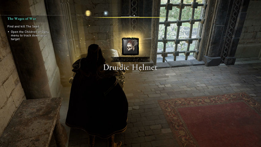 Пока вы находитесь в аббатстве Мовилла, вы можете совершить набег, чтобы собрать четыре ирландских груза. Внутри самой большой церкви есть сундук с друидским шлемом. Чтобы получить Шлем друидов, пройдите по внешней стороне церкви, пока не найдете металлические решетки, которые позволят вам заглянуть внутрь комнаты, в которой находится сундук. Используйте Зрение Одина и свой лук, чтобы пустить стрелу через отверстия в металлических прутьях, чтобы открыть дверь в дальнем конце. Затем просто войдите в церковь и войдите в комнату слева.