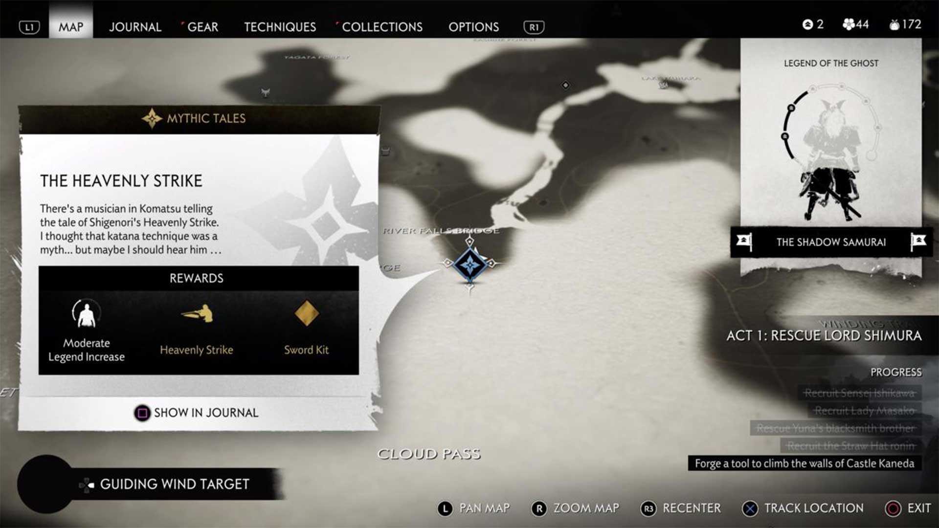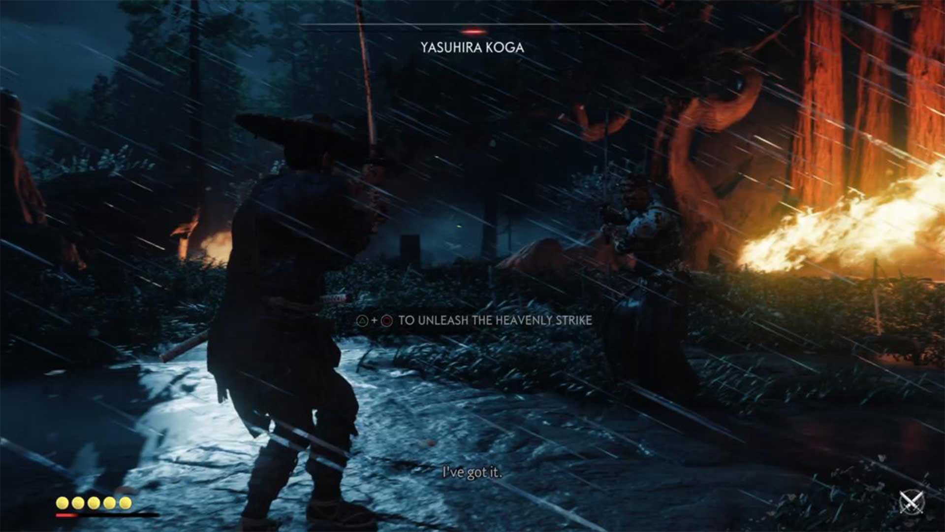 Как только берег очистится от врагов, вас столкнут в бой с боссом против ронина по имени Ясухиро. Он быстр, но справиться с ним не так уж сложно, если вы будете крайне внимательны. Он будет довольно часто пытаться ударить вас Небесным ударом, который нельзя заблокировать, поэтому уклоняйтесь от него и наносите пару ударов, когда он проходит мимо. Остальные его атаки стандартны, и вы можете парировать их, нанося хороший урон, или попытаться поразить его сильными атаками. Успех победы в том, чтобы не переусердствовать и уворачиваться когда это реально необходимо. Продолжайте уклоняться от его атак и отбивать его атаки. Когда он получит достаточно урона, вы изучаете атаку Небесного удара, используйте эту атаку, чтобы прикончить его.