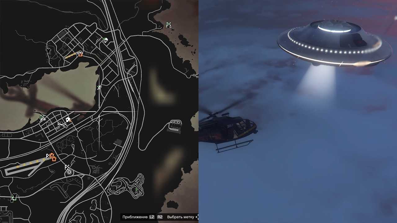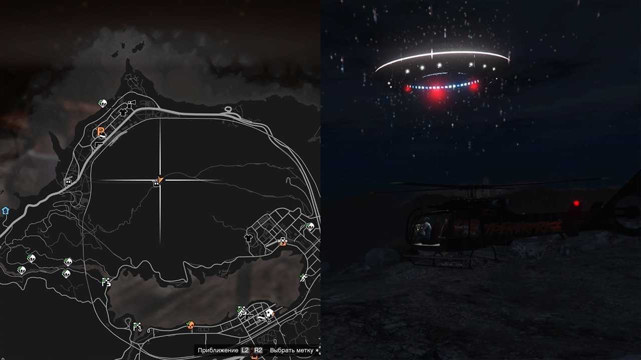 Первая летающая тарелка доступна любому игроку. Ее можно легко найти под водой, недалеко от Палето Бэй. На ее борту нет никаких опознавательных знаков, кроме очень нечеткой надписи на латинице. Именно поэтому многие считают ее настоящим кораблем пришельцев.