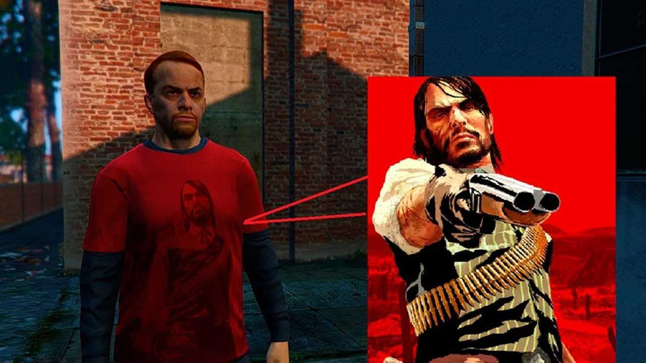 В игре также есть отсылка на другой проект студии — Red Dead Redemption. Рисунок главного героя может появиться на футболках рандомных прохожих.
