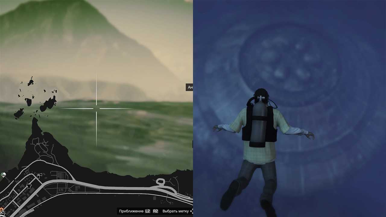 В гораздо более неуловимой части карты эта скрытая область может быть расположена среди одного из крошечных островов Тихого океана. Игрокам придется добраться до него с помощью какого-либо водного транспорта и тщательно отыскать участок земли, на котором стоят два дерева бок о бок. Достигнув основания одного из этих деревьев, GTA 5 игроки внезапно окажутся в секретном подземном бункере, где на страже стоят наемники и агенты ФБР.