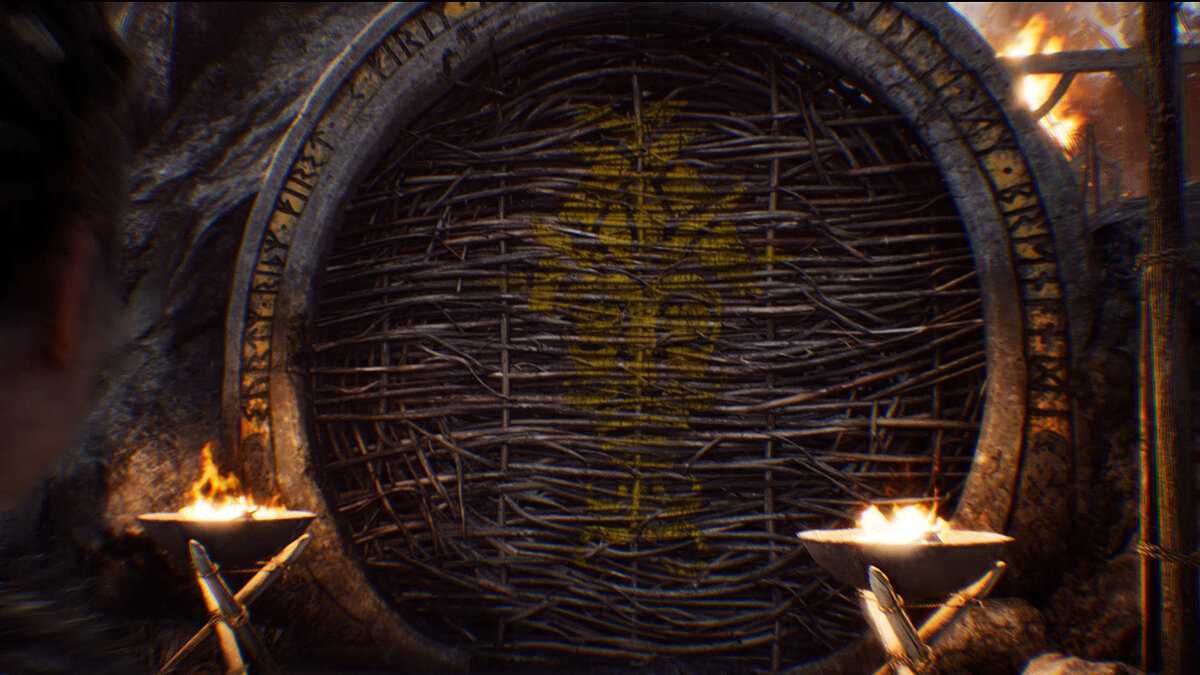 Хотя ее трудно назвать пазлом как таковым, так как она лишь демонстрирует, как нужно использовать фокус для открытия дверей. Внутри пещеры вы найдете красную дверь, которая окажется закрытой. После взаимодействия с ней вы встретите Друта (Druth) или точнее услышите его. Он сообщит вам, что нужно отыскать специальный символ, чтобы отпереть дверцу. Вернитесь ко входу в пещеру и сфокусируйтесь на воротах для их разблокировки.