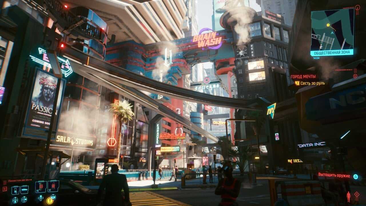 В режиме рейтрейсинга задержка ввода команд с геймпада неприятно высока. Бегать по городу и общаться с персонажами можно. Но как только начинается экшн, резко хочется забежать в меню и поменять режим на Производительность. Иначе ты не кибервоин, а что-то такое неповоротливое и заторможенное, с консистенцией слайма.