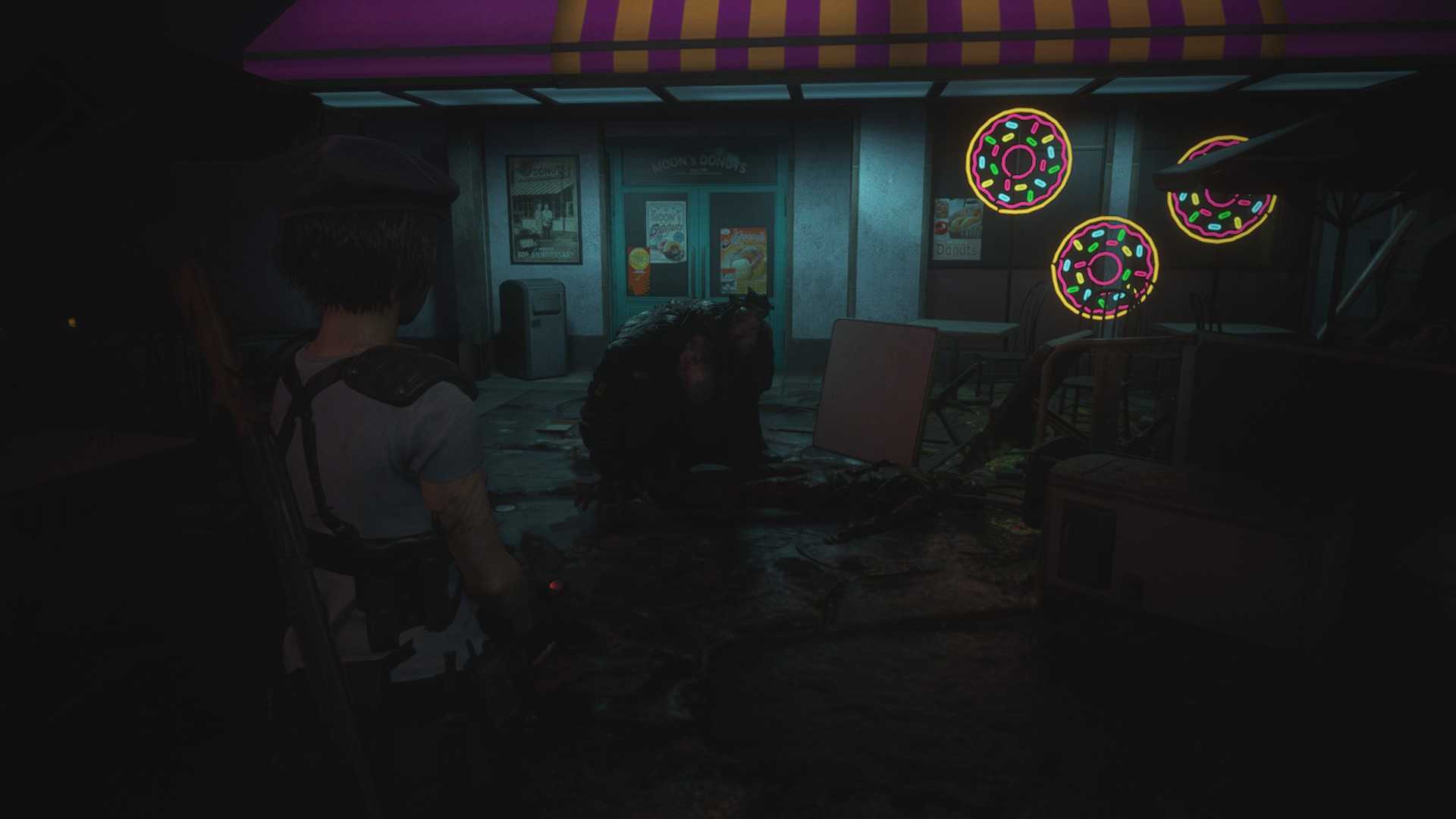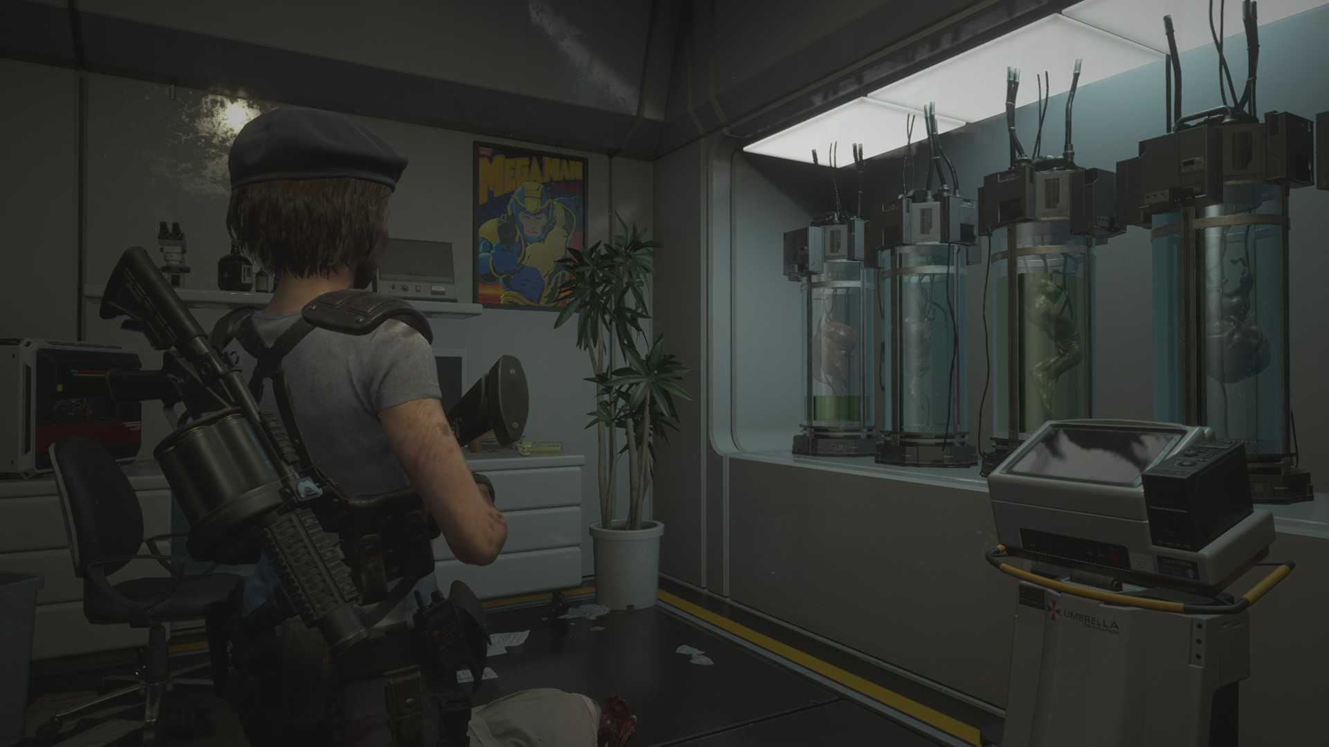 Вам также нужно регулярно продвигаться в борьбе с Немезидой, дежурным плохим парнем. Тиран до этого была просто предварительная тренировка. Сталкер из ремейка Resident Evil 2 — детская игра по сравнению с Немезидой.