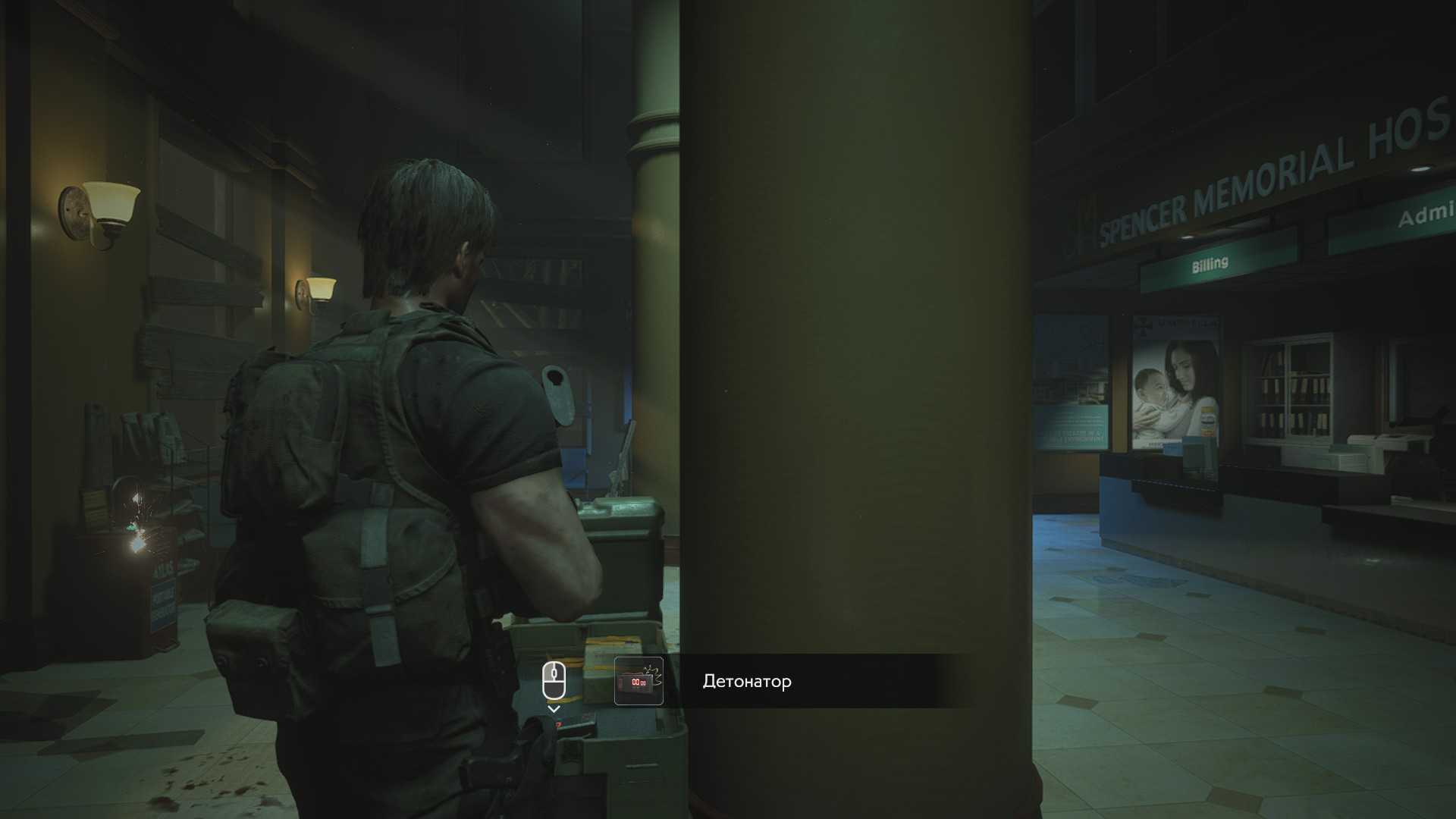 Детонатор – в вестибюле у колоны. Его можно использовать после кат-сцены.