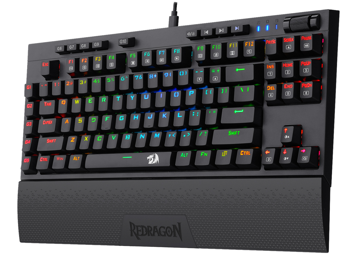 Redragon является не самым известным среди геймеров брендом, но при цене всего $70 искушение купить эту клавиатуру довольно велико. Она работает на частоте 2,4 ГГц и содержит в себе подсветку RGB, макро-клавиши и мультимедийные, металлический регулятор громкости, линейные переключатели и подставку для запястий из пластика. Цифровые клавиши отсутствуют. При этом цена вдвое ниже по сравнению с конкурентами.