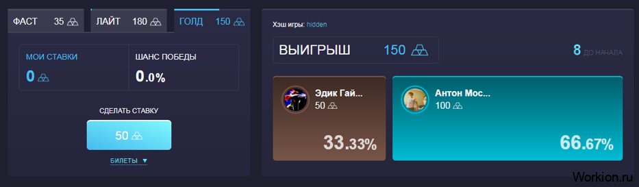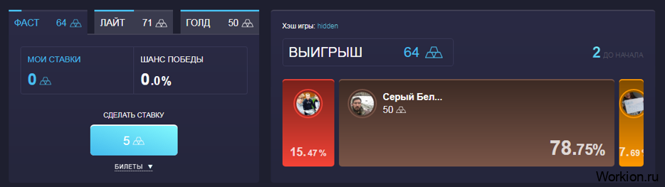 Есть одна действенная тактика для данной игры, но для неё потребуется большой баланс. Нужно на последних секундах залетать в розыгрыш и делать максимальную ставку. В этом случае, шансы на победу будут самыми высокими. В зависимости от выбранной комнаты (Фаст, Лайт или Голд), максимальный лимит меняется: