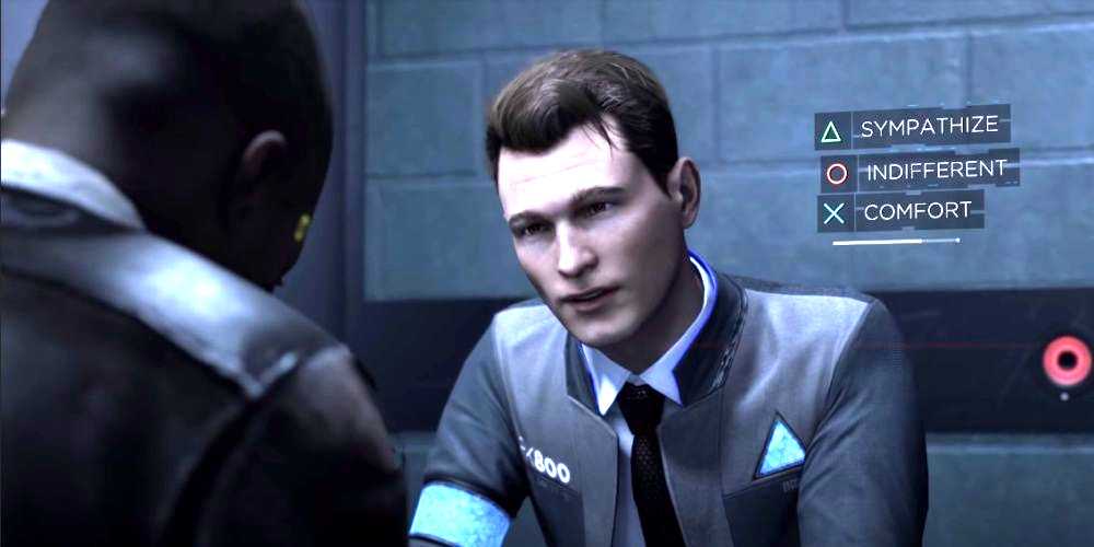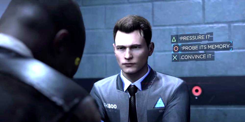 Геймплей игры Detroit начинается с выбора уровня сложности: простой или продвинутый вариант. В 2038 году на Земле идет производство андроидов, предназначенных для помощи людям. Есть три героя. Коннор — детектив, Маркус — личный помощник и Кара — домохозяйка.