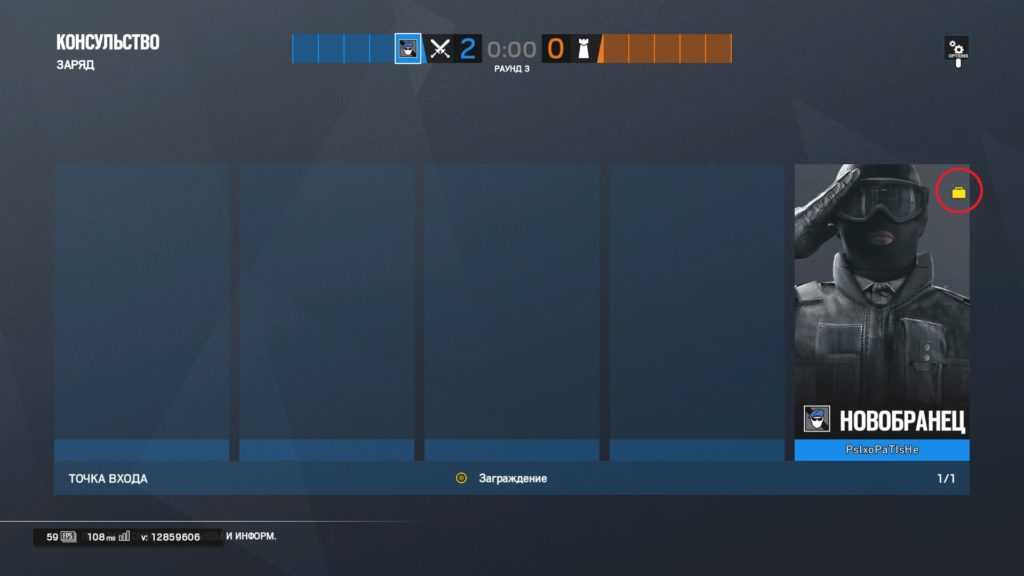Фаза выбора при игре на режиме “Заряд” несколько отличается от оставшихся двух. В рейтинговой игре, помимо выбора оперативника или точки появления, игроки могут взять себе специальное устройство – деактиватор. Если этого никто не сделал, то игра выдаст его случайному игроку. Аналогичным случайным образом игра выдаёт это устройство игрокам в обычной игре без возможности как-то повлиять на это. Однако, страшного в этом ничего нет, его можно отдать союзникам в течении активной фазы.