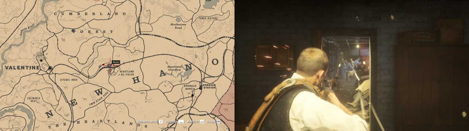 Едем в Cornwall Kerosene & Tar и поднимаемся в офис на втором этаже. Когда перед дверью соберется достаточно противников – кидаем динамит. Локация доступна до выполнения задания “Мой последний сын” в главе 6.