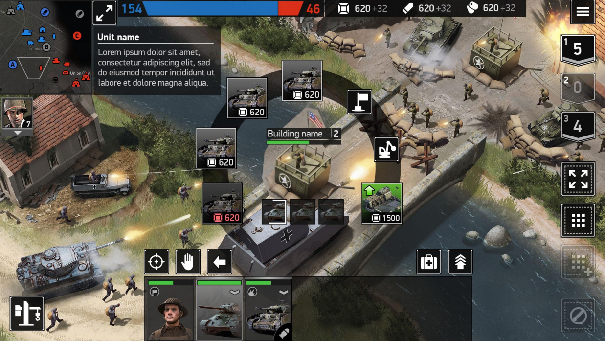 Сначала мы попытались облегчить игрокам ориентирование в том, кто есть кто, с помощью все тех же портретов. С пехотой это работало хорошо, но техника одного типа (к примеру, танки) все равно была похожа друг на друга аки однояйцевые близнецы. В студии мы это называли проблемой «коробочек на колесах».