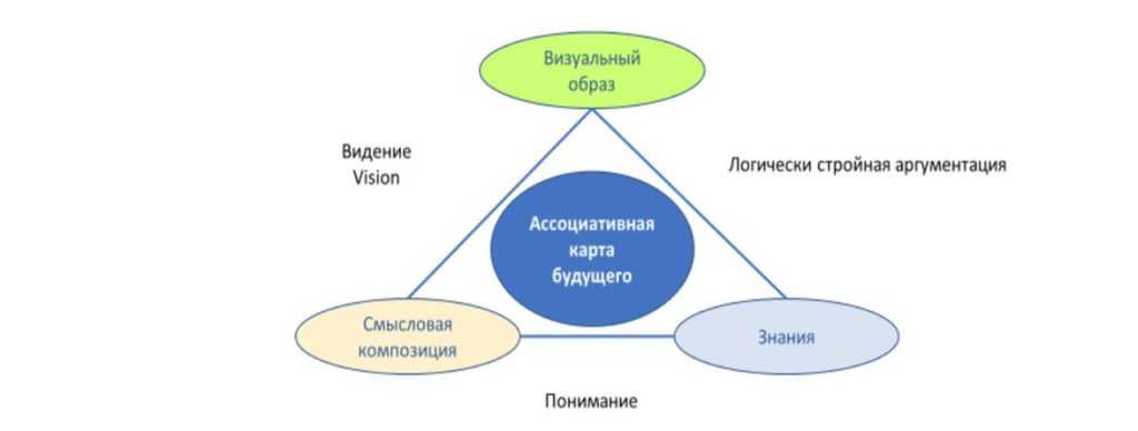 На связке между визуальным образом и смысловой композицией возникает видение будущего. А на связке между смысловой композицией и нашими знаниями — понимание.