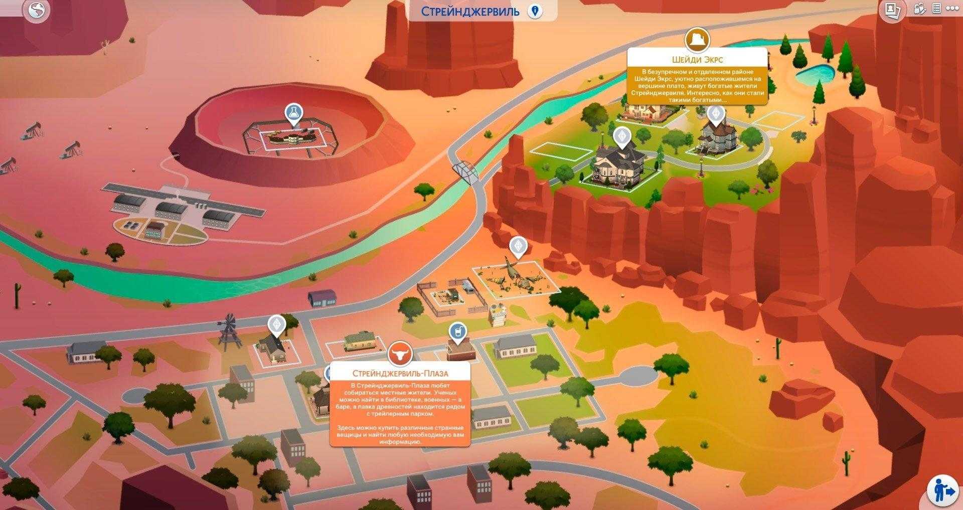 Новая локация, которая появляется с выходом дополнения, – город посреди пустыни, в котором творятся странные вещи. Несмотря на то, что на первый взгляд город кажется большим, игровых зон добавлено не так уж и много. Стрейнджервиль разделен на два района и содержит 12 участков, 11 из которых возможно редактировать. Двенадцатый участок является секретным, на нем то и завязана сюжетная линия нового дополнения.
