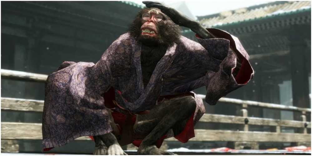 Обезьяны охраняют проход к Божественному дитя, поэтому являются обязательным боссом в Sekiro. На арене вы встретите монаха, который поведает вам о слабостях каждой обезьяны (хотя об этом можно догадаться еще по рисункам на ширме в начале локации.