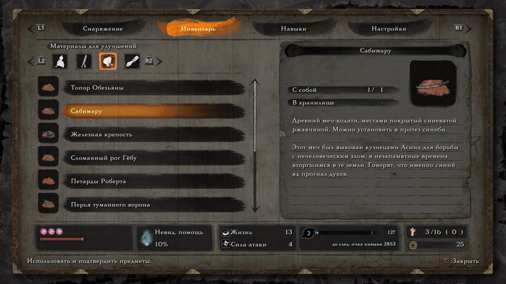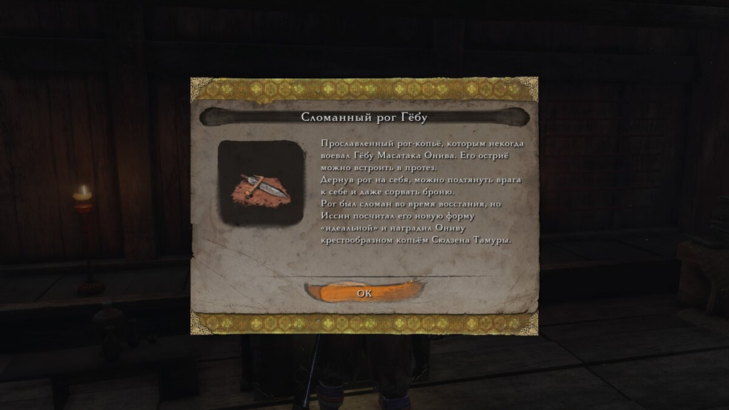 Инструмент №6 — Сломанный рог Гебу (Gyoubu’s Broken Horn)