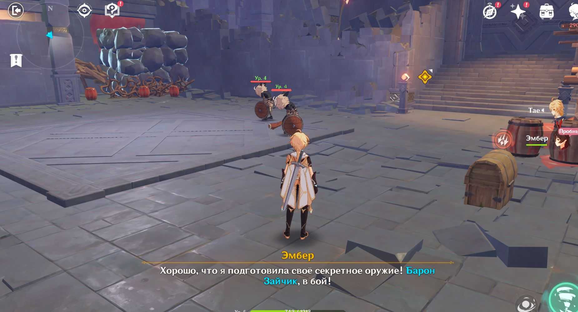 После исследования гриба зохра нужно будет идти по выходу из пещеры, он будет плотно заминирован взрывчаткой, Дендро бочками и прочими ловушками, так что двигайтесь быстро, но осторожно, при возможности пользуйтесь щитами и едой для лечения. Помните, что использование большинства Взрывов стихий дает Вам временную неуязвимость