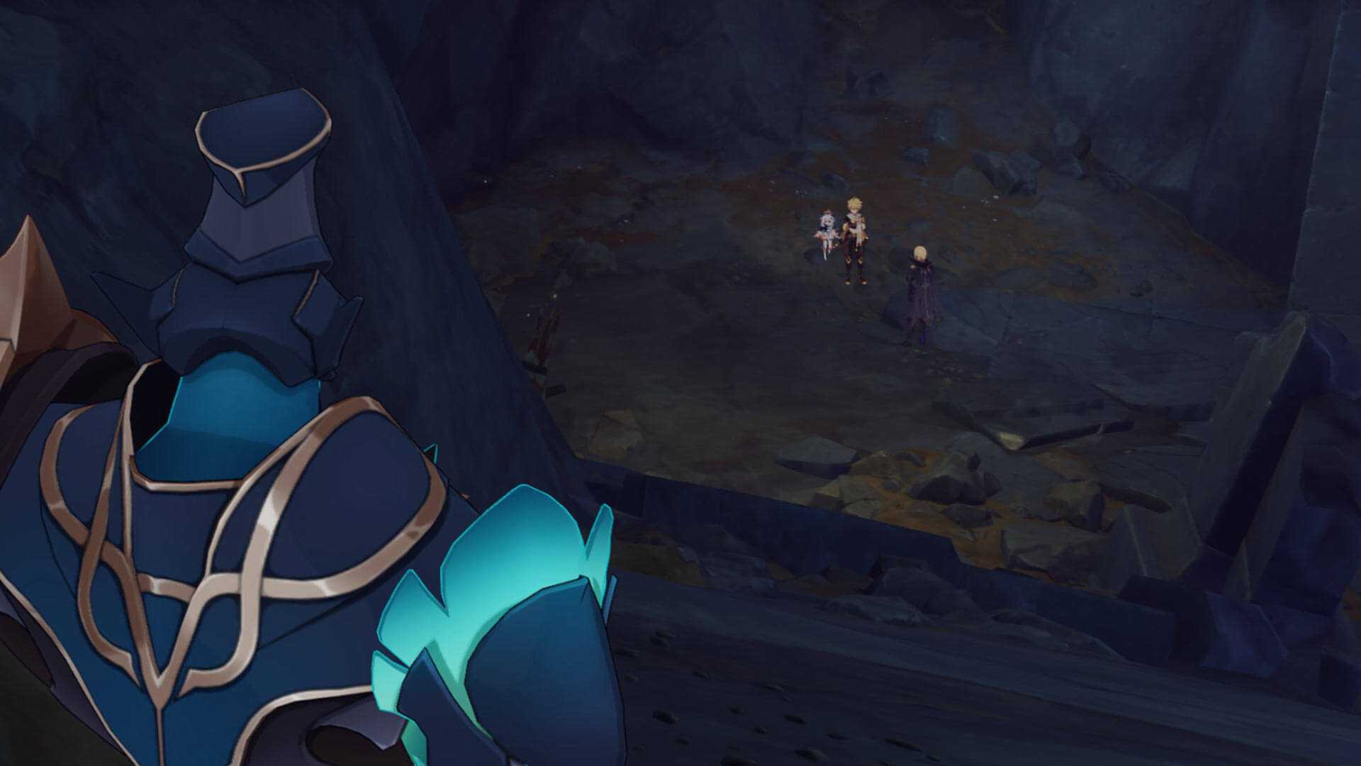 Появляются рыцари, чтобы защитить умирающих хиличурлов, но другой рыцарь, который за нами следил, приказал им отступить. Дайнслейф узнал в нем своего друга по имени Хальфдан. В день нападения на Каэнри’ах он отдал Хальфдану последний приказ – охранять город и жителей, несмотря ни на что. Видимо, даже спустя много веков в сознании потерявших рассудок рыцарей сохранилось осознание своего долга, и они до сих пор охраняют жителей Каэнри’ах в их нынешнем виде.