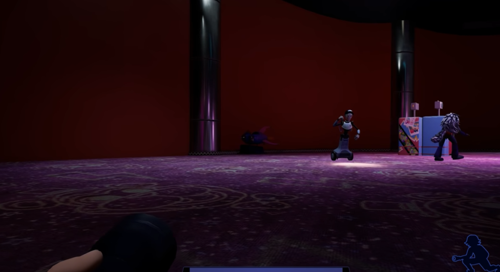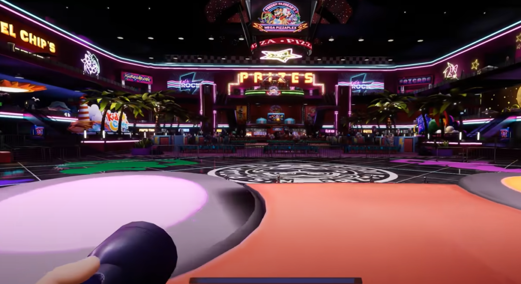 После этого нужно попасть на танцплощадку – воспользуйтесь лифтом с надписью Fazcade на третьем уровне атриума. Зайдите в комнату охраны. Если вы уже забрали голову бота, произойдёт отключение электричества. Для восстановления питания необходимо спуститься на нижний уровень на лифте и направиться в сторону танцплощадки. – там возле диджея вы найдёте один из рычагов, который нужно активировать. Выйдя в коридор поищите второй в мужском туалете, третий и четвёртый – в помещении с игровыми автоматами на нижнем и верхнем уровнях. Последний расположен на правой стене коридора склада. Вернитесь в офис службы безопасности и установите голову бота в специальное отверстие, после чего будет произведён автоматический ремонт.