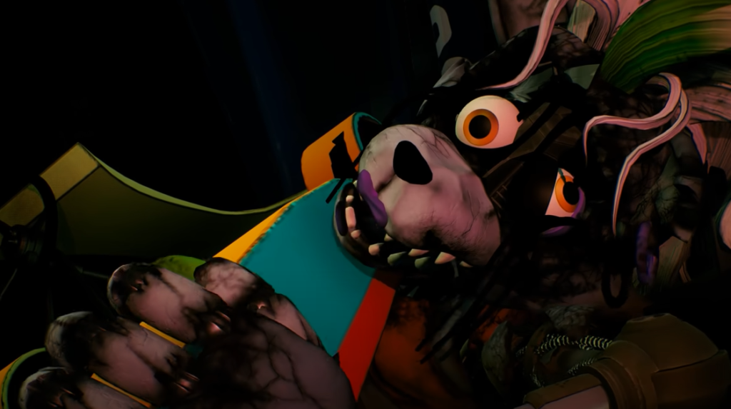 В локации «Гонки Рокси» закрепите голову на боте-водителе. После просмотра ролика подойдите к Рокси и заберите её глаза. Чтобы выбраться из этого места, провоцируйте ослепшего аниматроника на разрушение деревянных дверей.
