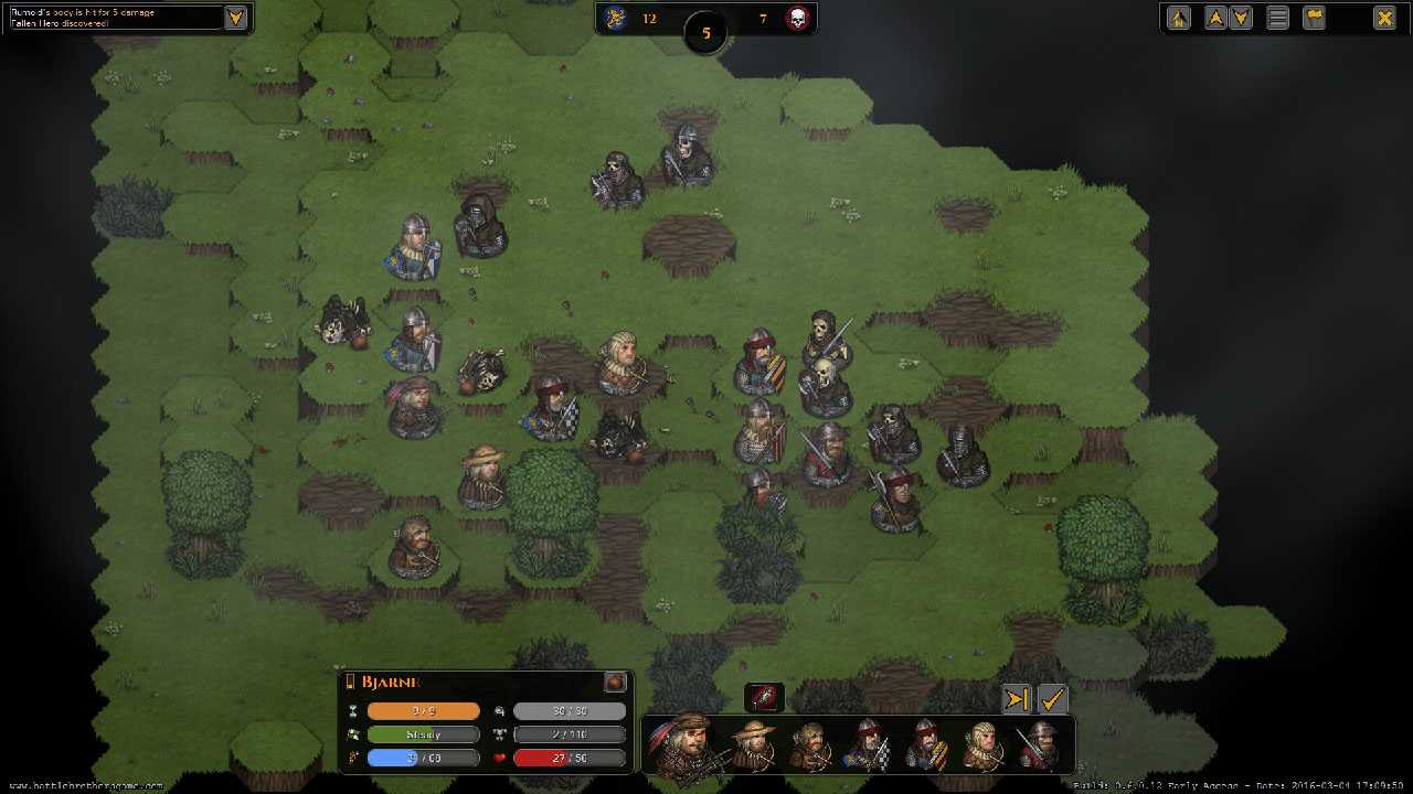 Геймплей в Battle Brothers я условно делю на две части — перемещение по глобальной карте со всеми сопутствующими действиями и, собственно, битвы. Первая часть геймплея очень сильно лично мне напоминает Mount & Blade. Тут точно такая же свобода действий – куда хочешь, туда и можешь. Очень похожая система квестов, к тому же. Разве что нельзя атаковать караваны и крестьян, которых вы встречаете на дорогах и нет турниров. Ну, или я просто не понял, как нападать на караваны, но скорей всего все-таки пока этого делать нельзя. Но есть очень приятная особенность – процедурная генерация глобальной карты, которая в буквальном смысле означает, что каждый раз, начиная игру, вы будете играть уже на абсолютно другой карте, с другими фракциями, городами и ландшафтом. Я пока начинал заново только один раз, но поменялось в буквальном смысле все. Вплоть до того, что баланс противников получил уклон в орков и гоблинов, хотя на первой карте было больше всего бандитов и целая тучу оборотней. Помимо городов и деревень, вы будете встречать самые разные локации – крепости орков, гоблинов, бандитов, кладбища, крипты и т.д. Естественно, везде придется повоевать.