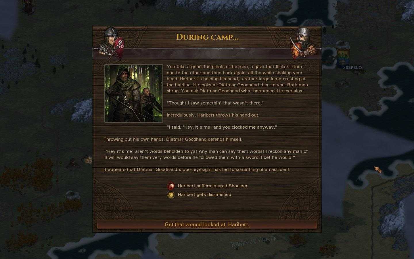 Так как вы возглавляете наёмников, то каждый день они требуют зарплату, еду, инструменты для починки снаряжения, медицинские припасы для лечения полученных в бою травм и стрелы для луков. Всё это можно объединить в статью «расходы», что это выводит геймплей на новый уровень – вы не просто путешествуете по миру, расслабленно наблюдая, что в нём происходит, а постоянно озадачены добычей денег, чтобы его хватило на пропитание, покупку нового снаряжения и другие вещи. Кроме того, после каждой битвы вашим бойцам потребуется некоторое время на восстановление здоровья, а если они получат травмы вроде сломанных пальцев или носа, то они будут висеть дебафом в течение нескольких игровых дней. Battle Brothers не даёт расслабиться.