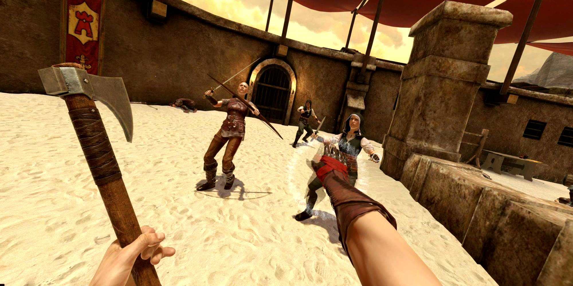 Еще один симулятор гладиаторских боев, где можно будет пролить немало крови. В две тысячи семнадцатом году проект вышел в ранний доступ и получил высокие оценки от пользователей. Перед игроком открывается простая арена, где три бравых воина сражаются против трех таких же вояк. Перед началом игры обязательно освободите пространство, поскольку придется много и часто двигаться, что может привести к болезненным ударам мизинцем об стол или тумбочку.