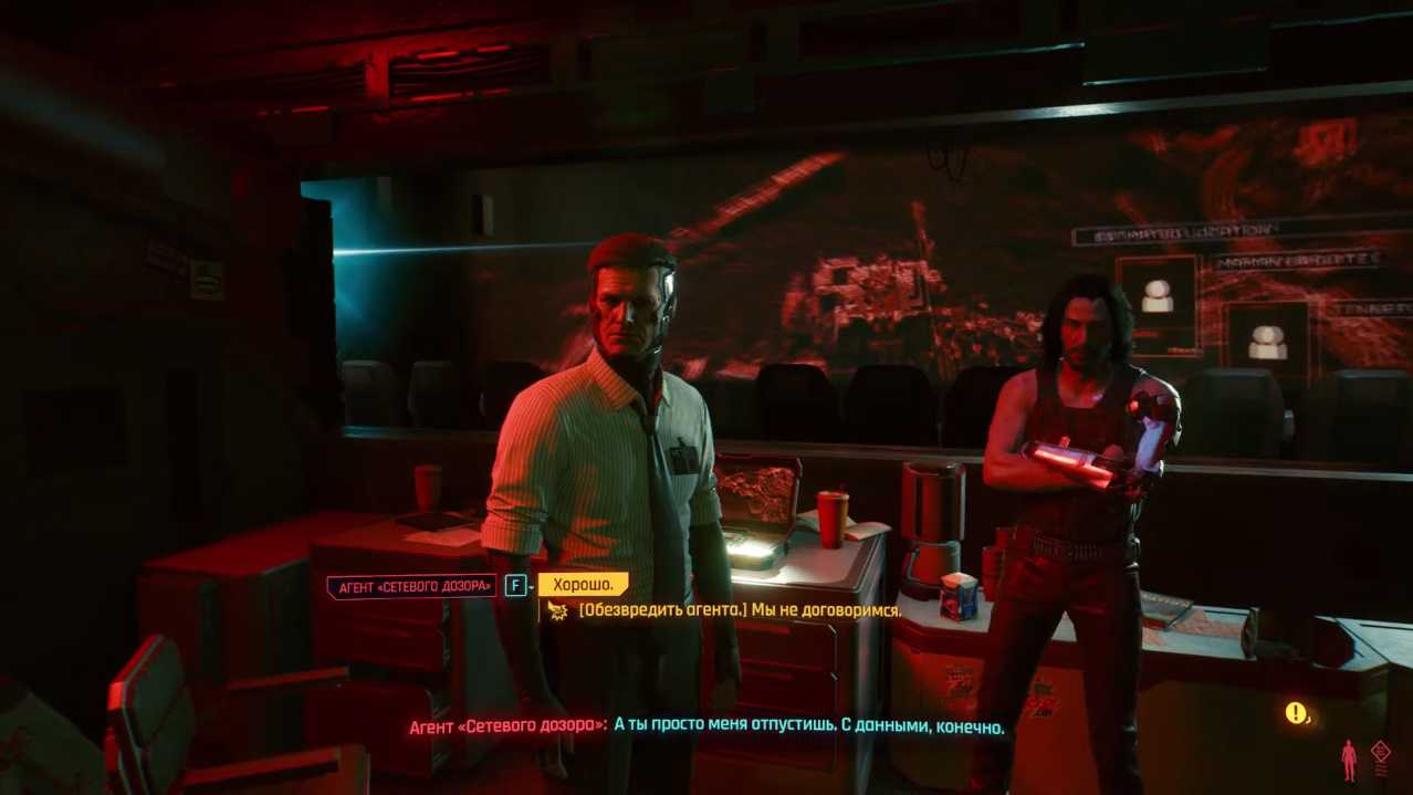 Он недолго будет читать нравоучения, а потом вы сможете поговорить с Томпсоном. В голове у Джонни появится идея, как освободить Альт – обратиться к Бестии за помощью. Как только вы поговорите с ней, группа агентов «Арасаки» нападет – и вы все еще играете за Сильверхэнда, поэтому придется стрелять. У него крутой пистолет, который при прицеливании подсвечивает соперников через укрытие, а также пробивает стены, поэтому затруднений в перестрелке не должно возникнуть.