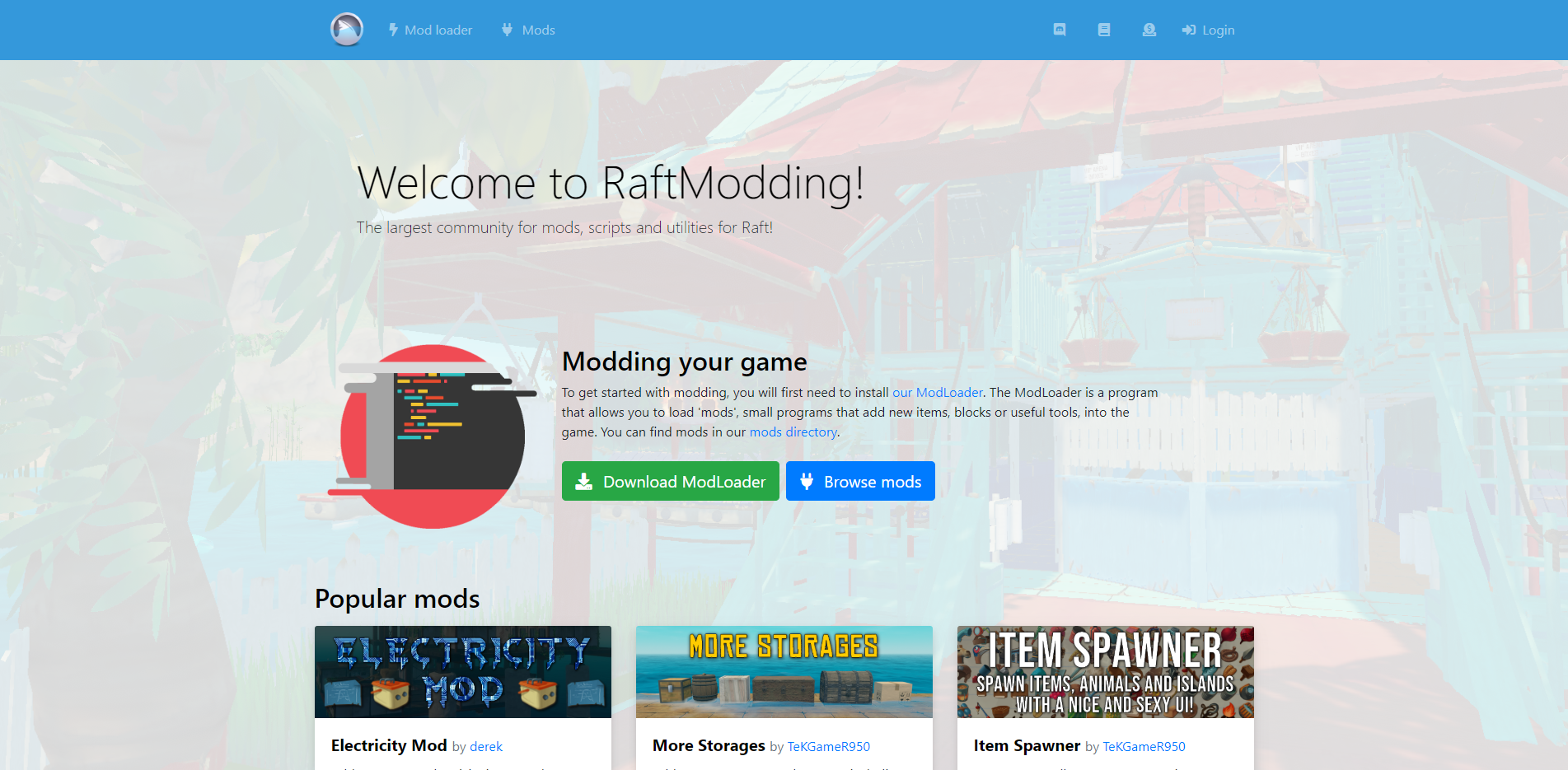 У Raft большое сообщество моддеров, и вы можете найти множество модов на сайте RaftModding. Здесь же вы найдете удобный ModLoader, который делает установку модов невероятно простой.
