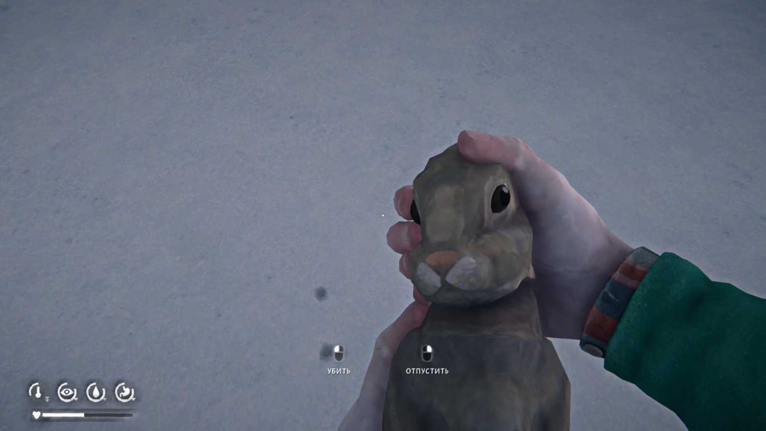 И так, значит оглушаем одного кролика и быстро к нему подбегаем – у нас есть несколько секунд на то, чтобы поднять его с земли, иначе он очнется и побежит. Подбираем и сворачиваем шею.