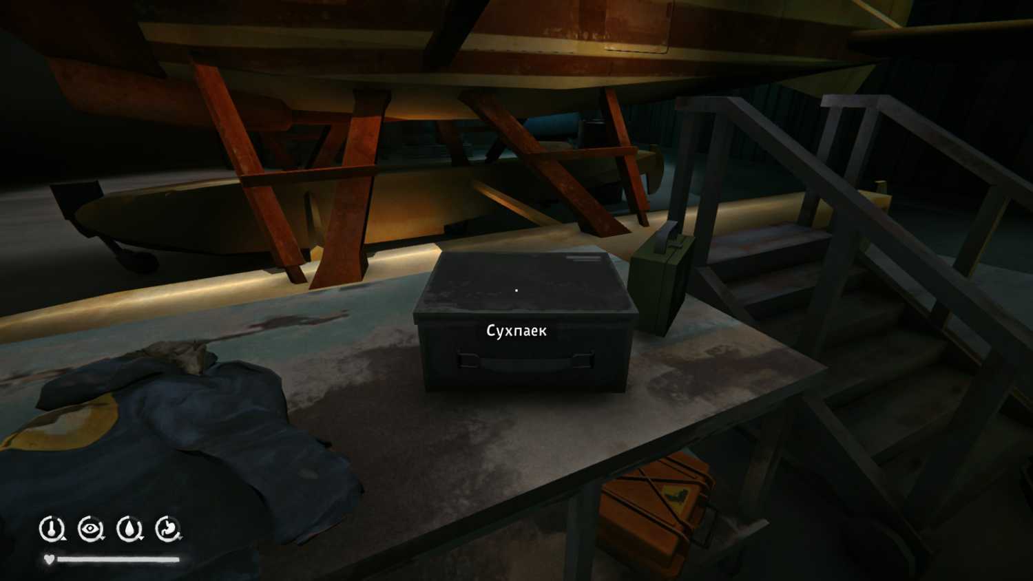 Пора идти собирать вещи. С собой мы можем взять только один предмет, так как топлива немного, да и погода мягко говоря «не очень», поэтому лишний груз лишь создаст проблем. Так что берем сухпаек или аптечку и забираем вещи Астрид возле трапа. Грузим все в багаж самолета.