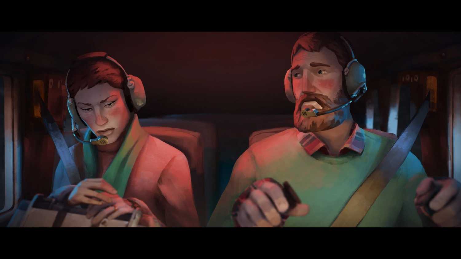 Вылетаем. Далее просто смотрим ролик, как герои летят сквозь метель и вспоминают свои прошлые отношения.