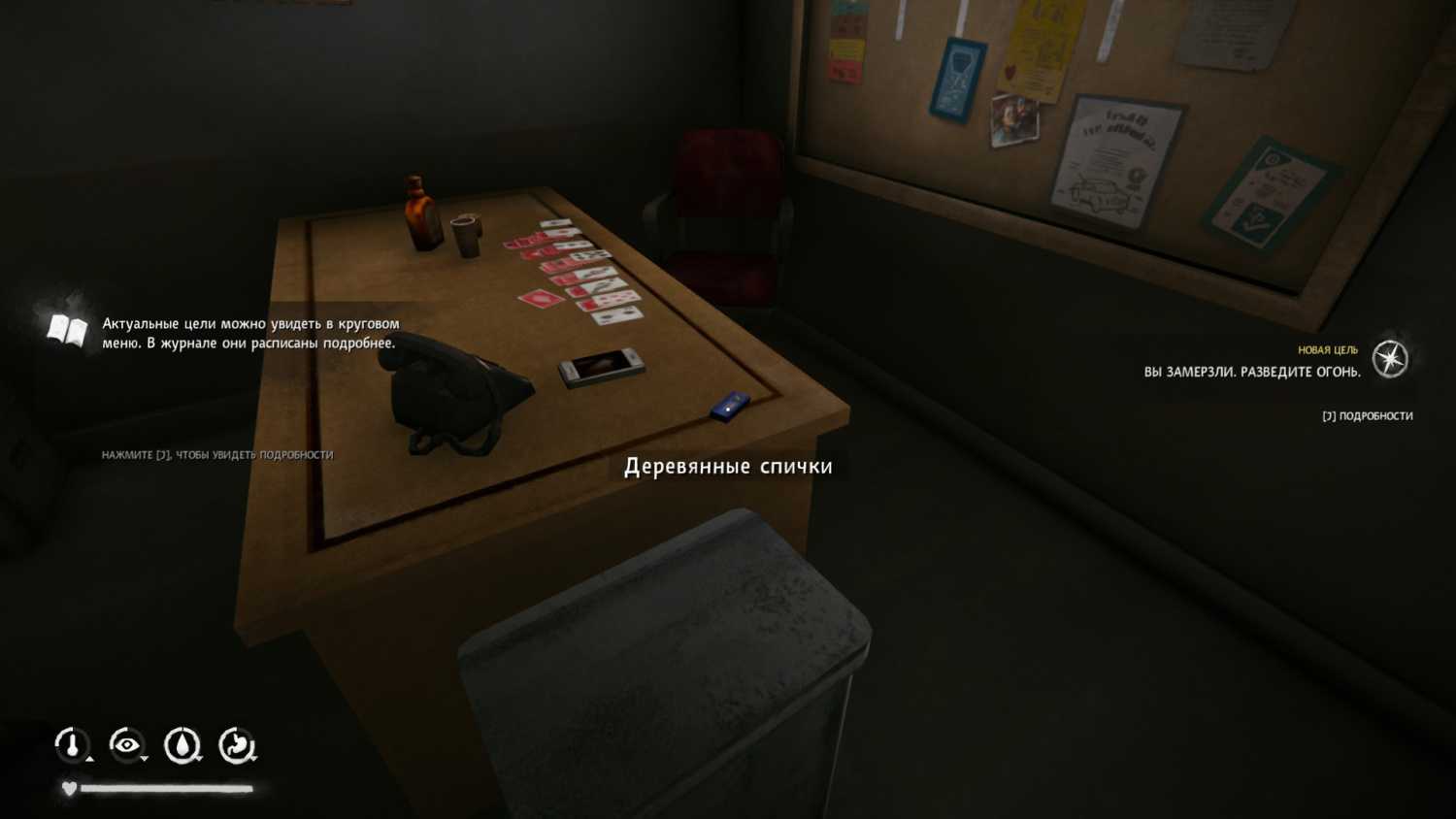 Мы играем за Маккензи – пилот. Он сидит в своем ангаре и коротает время за пасьянсом. Что-то похолодало, не помешает развести огонь. Встаем и берем спички со стола.