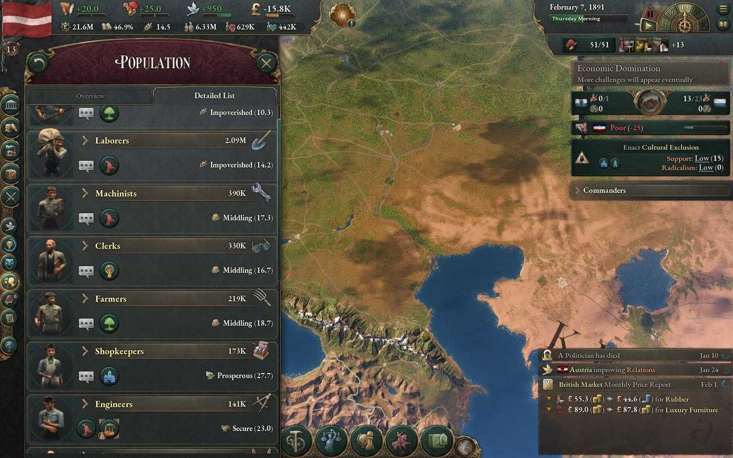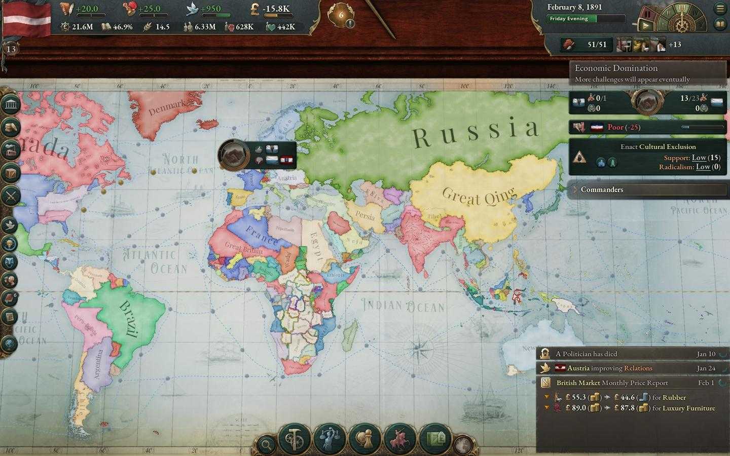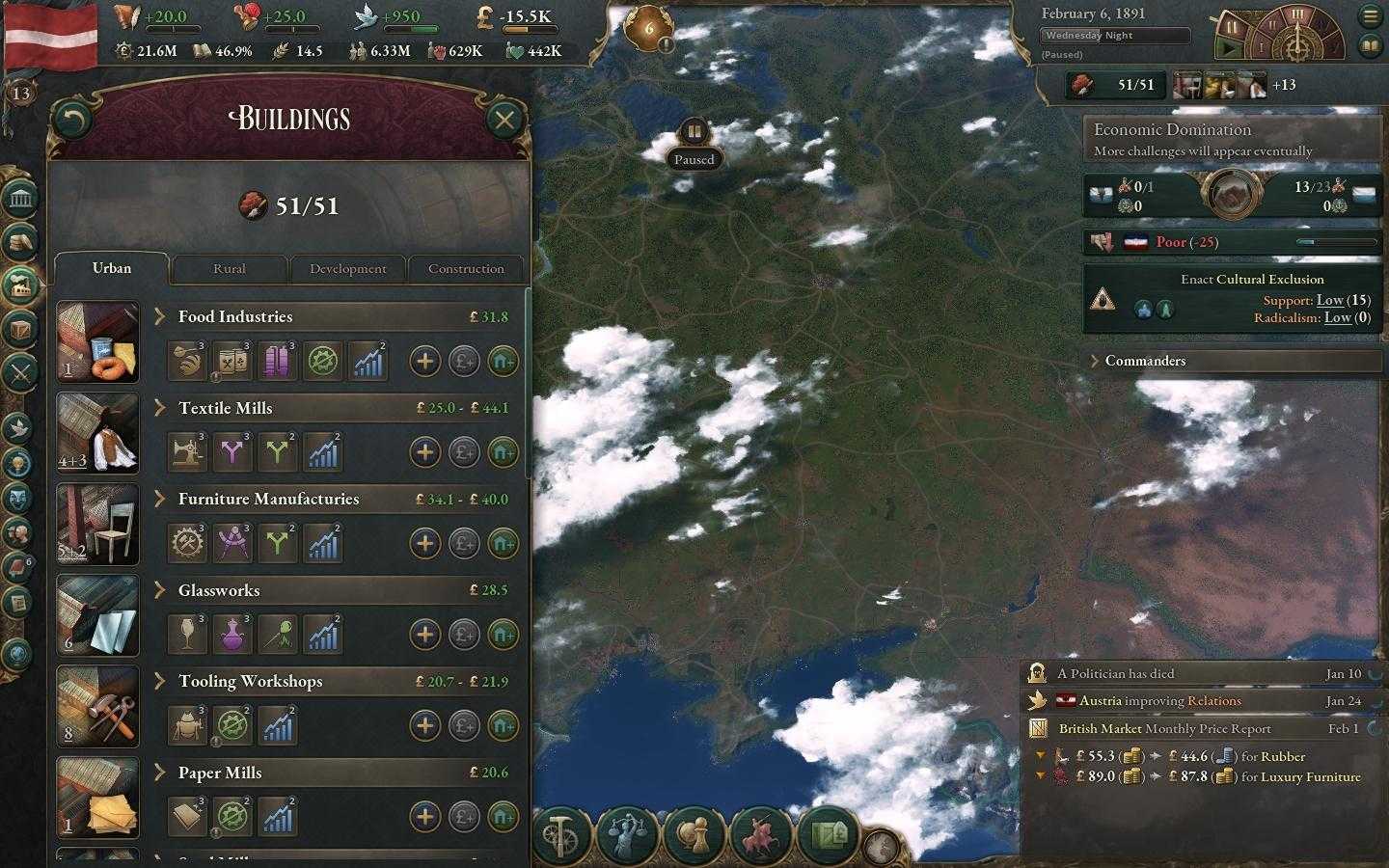 Таким образом, я не могу назвать Victoria 3 полноценной глобальной стратегией в её релизном варианте. Она, может быть, хороша как платформа для будущих обновлений и дополнений, но это покажет лишь будущее. На данный же момент игра ничем не отличается от любой браузерной стратегии, где надо добывать ресурсы и бесконечно строить здания ради постройки ещё большего числа зданий.