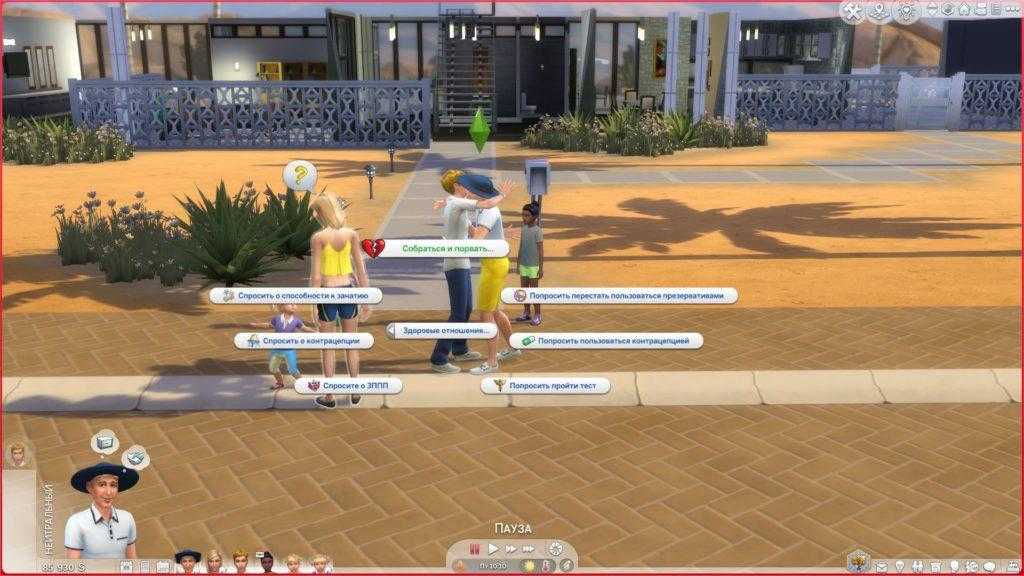 - Симы могут согласиться (или навязать) расстаться/сделать перерыв.