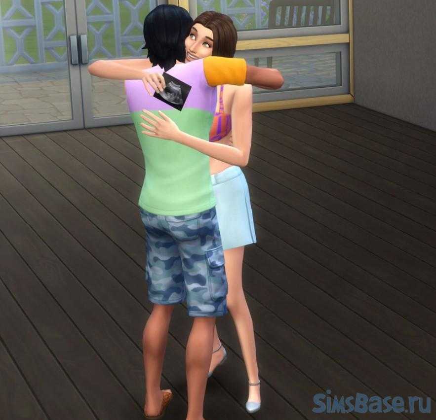 Беременные симы могут обниматься со своим романтическим партнером.