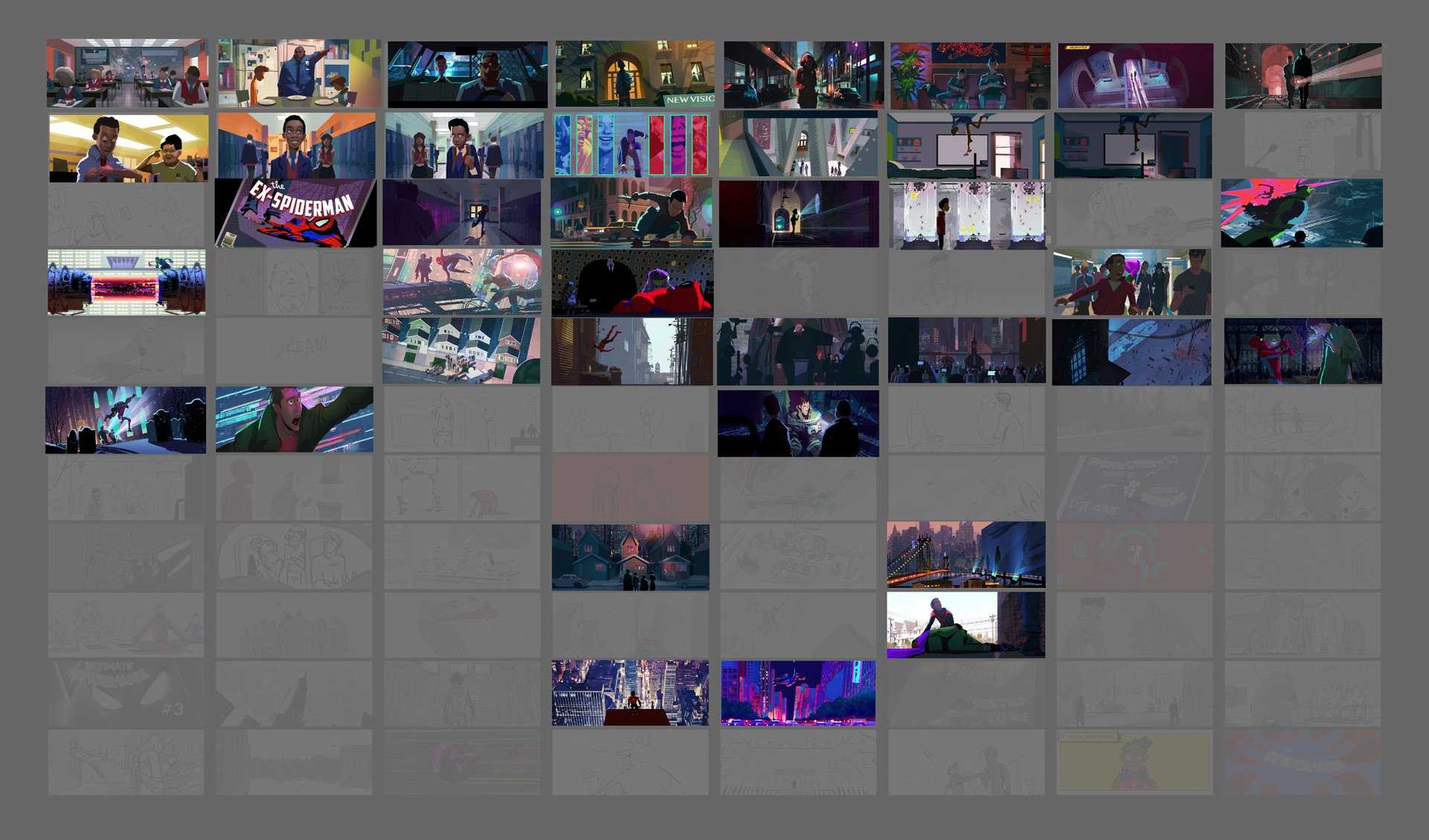 Постановщик Джастин Томпсон в интервью изданию Cartoon Brew рассказал о детали, которую я сначала не заметил, но которая становится очевидной, едва к ней присмотришься. В начале фильма Майлз — обычный подросток. Он слушает музыку, собирает рюкзак в школу и едет с отцом в машине — все эти сцены отличаются цветовой палитрой от последующего супергеройского разноса. В них более блеклые пастельные тона, в отличие от ярких цветов коллайдера и других вселенных. Сделано это для большего контраста между обыденной жизнью и непрекращающимися приключениями супергероев. Легче всего его заметить во время первой встречи Майлза с идеальным Пауком. Вот, что Томпсон говорит об этой сцене: