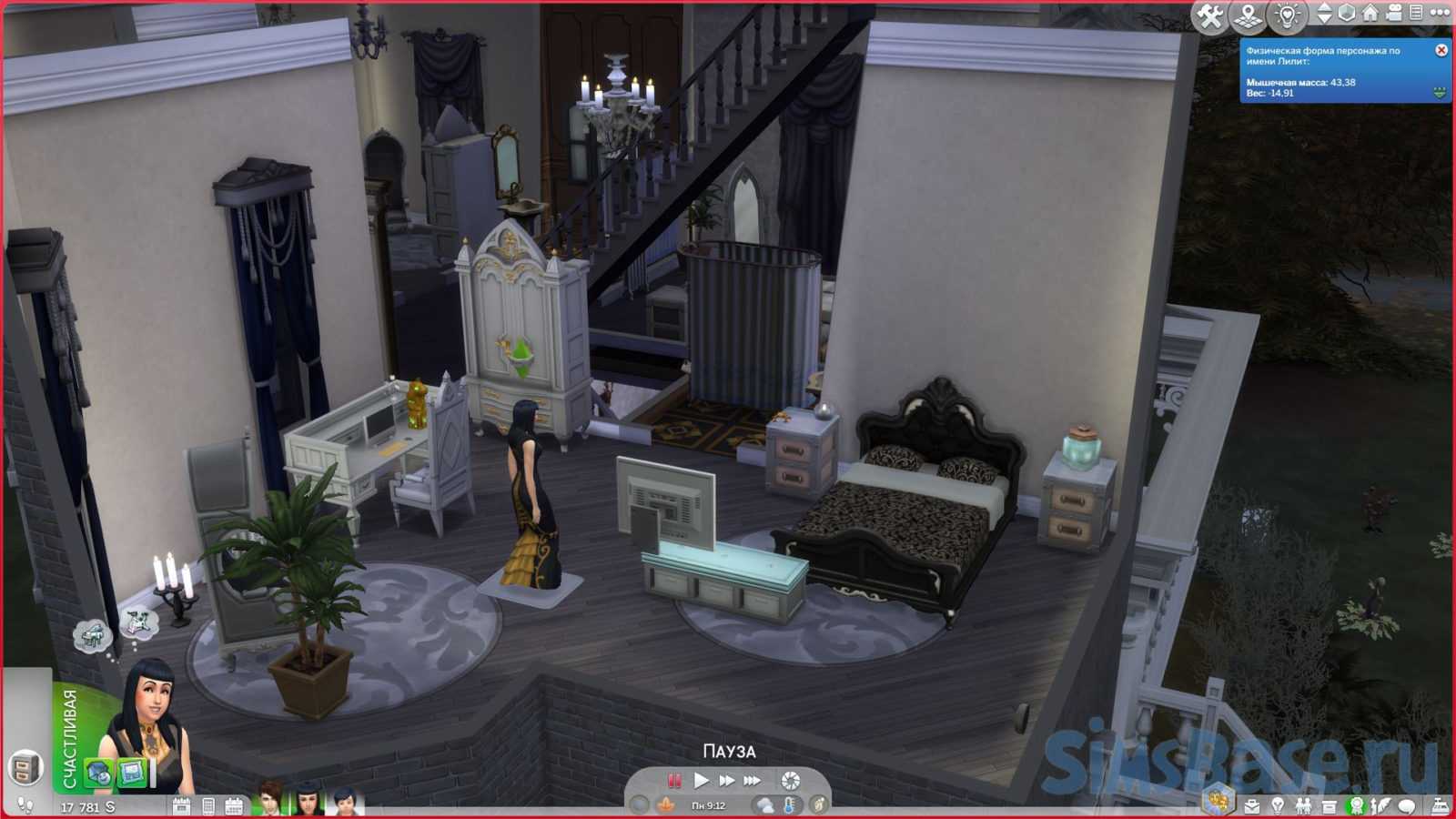 Также включен элемент напольный в режиме строительства (объект), позволяющий проверить вес и мышечную массу вашего сима. Найти его можно в режиме покупки раздел «Украшения»-> «Другое». По сути это напольные весы, только называние у них замысловатое.