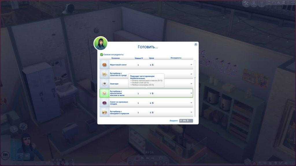 ПРИМЕЧАНИЕ. Если вы используете расширение Загородная жизнь и испытание «Простая жизнь», вы должны использовать все ингредиенты SCCO или использовать другой ингредиент создателей, совместимый с SCCO, который использует тот же тег или тип. При активном испытании у вас должны быть все ингредиенты для приготовления блюда. Вы не сможете тратить деньги на изготовление рецептов.
