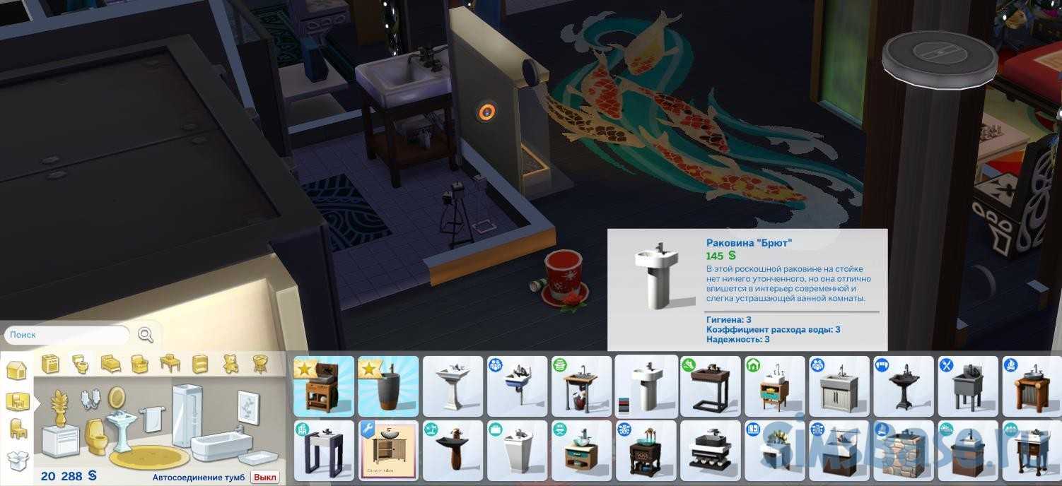 В ванной есть 3 необходимых предмета: раковина, унитаз и душ/ванна. Вам нужно убедиться, что вы выбираете предметы, которые могут функционировать без подключения к КС, из категории «Жизнь без удобств» в режиме строительства создание (возведение) зданий, строений и сооружений. Эти предметы будут работать немного иначе, чем обычный набор для ванной.
