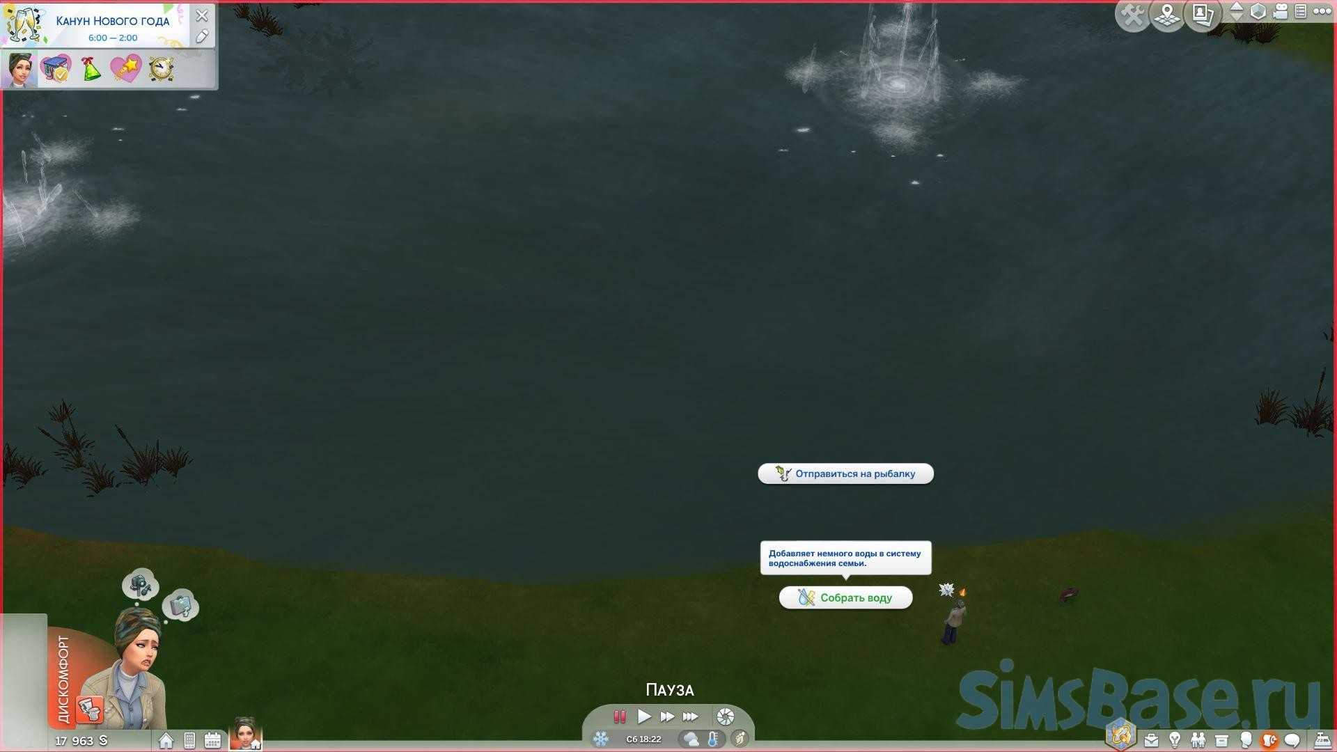 Если вы хотите, чтобы вашему симу было доступно немного воды, вы можете получить её, если соберёте сами. Вы можете пойти в любое место для рыбалки (пруд, озерцо в любом регионе) или в любое место Место — местоположение, расположение, нахождение, состояние, точка и так далее для плавания (например, к океану Сулани) и выбрать «Собрать воду коммуна во Франции, находится в регионе Шампань — Арденны». Эта вода позволит вам регулярно принимать душ или ванну, пользоваться туалетом или использовать раковину в обычном режиме.
