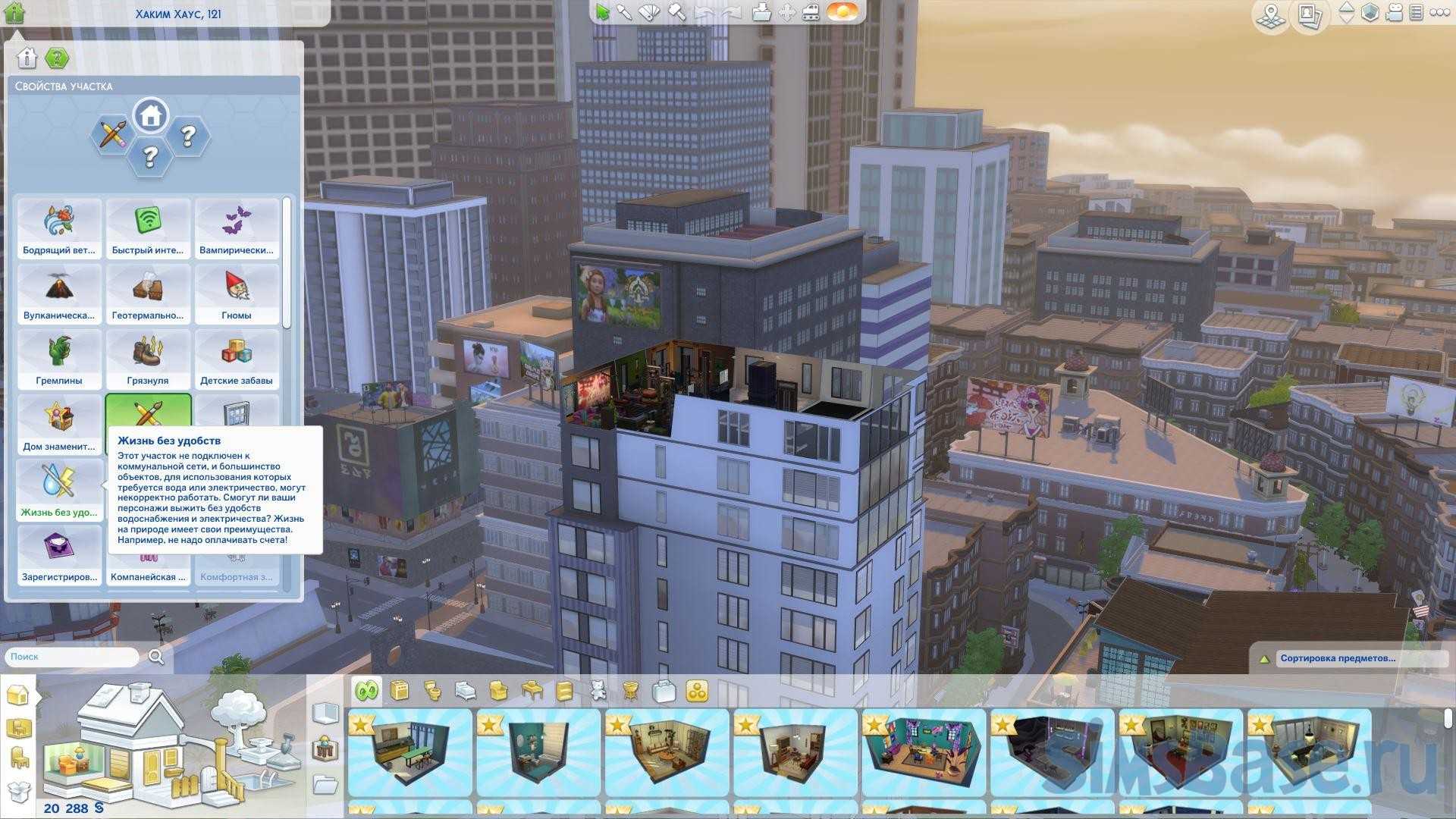 Чтобы официально сделать дом вашего сима может означать: Сим — в Библии старший сын Ноя, родоначальник семитских народов отключённым от коммунальных служб (КС), вам нужно добавить свойство участка «Жизнь без удобств». Это можно сделать, перейдя в режим строительства и перейдя к значку домика и вопросительного знака в верхнем левом углу экрана. Вы увидите все доступные вам характеристики участка, и они будут расположены в алфавитном порядке.