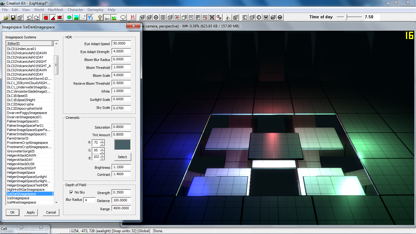 Выберем любой ImageSpace и кликнем два раза мышкой по нему. Откроется окно настройки со списком существующих шаблонов, просто перебираем их нажимая стрелки на клавиатуре, а в окне рендера будет наглядно отображаться изменение окружения под какой-то конкретный ImageSpace: